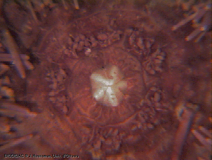 Surface of a sea urchin, showing spines, pedicillaria, tube